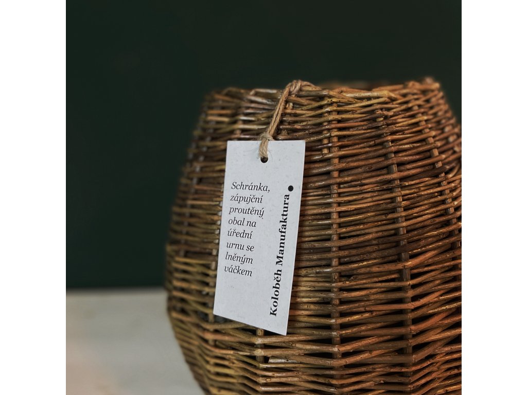 | Složení: | proutěný obal + lněný pytlíček na úřední urnu |